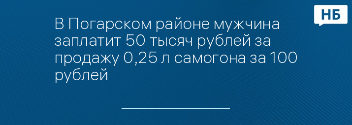 В Погарском районе мужчина заплатит 50 тысяч рублей за продажу 0,25 л самогона за 100 рублей