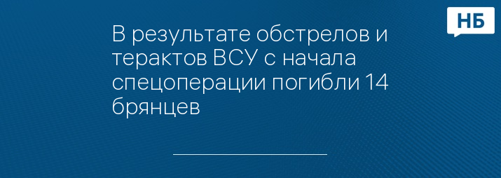 С начала проведения специальной военной операции в результате террористических атак ВСУ на Брянскую область погибли 14 мирных жителей.