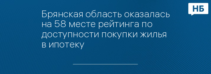 Брянская область на 58 месте в рейтинге регионов по доступности ипотеки