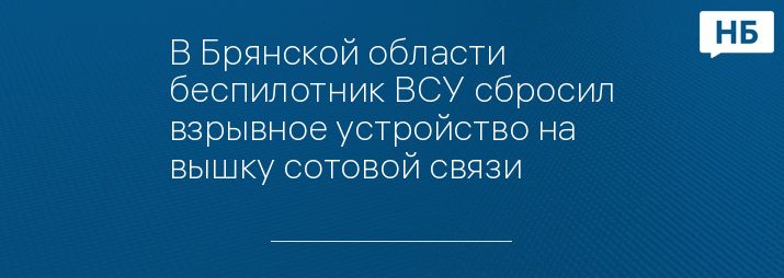 В Брянской области беспилотник ВСУ сбросил взрывное устройство на вышку сотовой связи