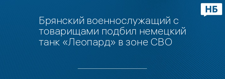 Брянский военнослужащий с товарищами подбил немецкий танк «Леопард» в зоне СВО
