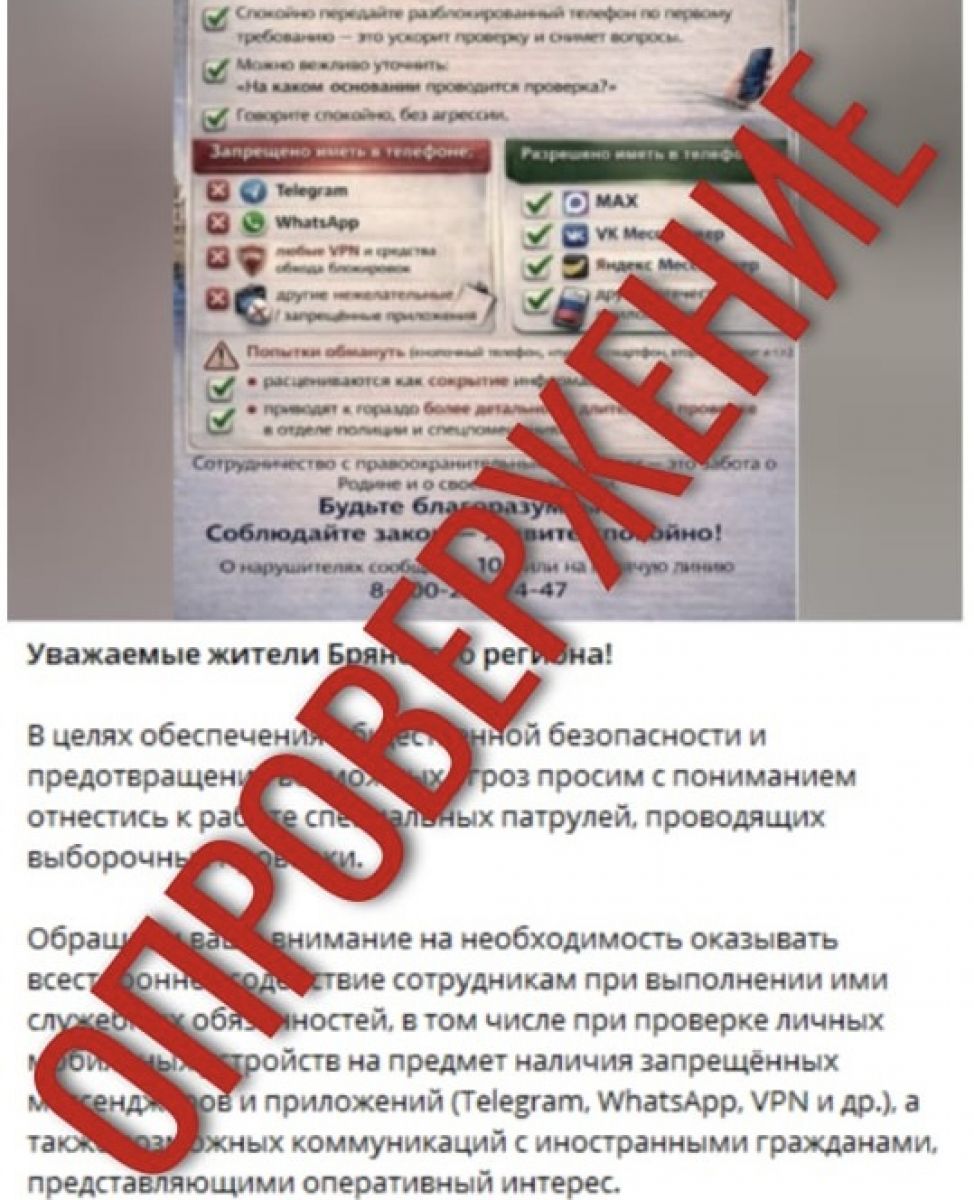 МВД Брянской области опровергло проверку телефонов граждан на мессенджеры