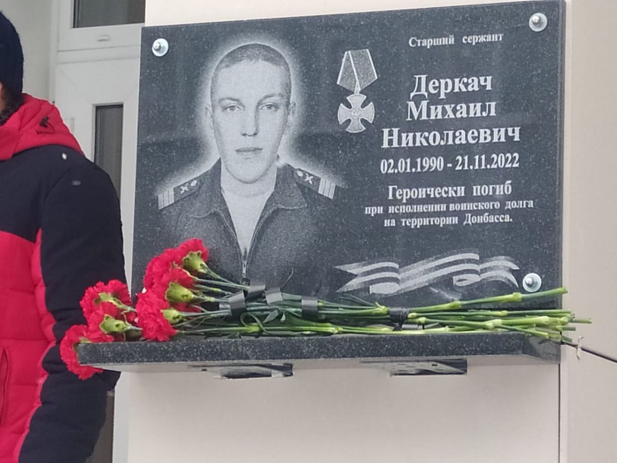 В Клинцах Брянской области был открыт мемориальный памятник Михаилу Николаевичу Деркачу, который погиб при исполнении воинского долга на Донбассе. Торжественный митинг, посвященный этому событию, состоялся в Клинцовской кадетской школе, где учился боец.