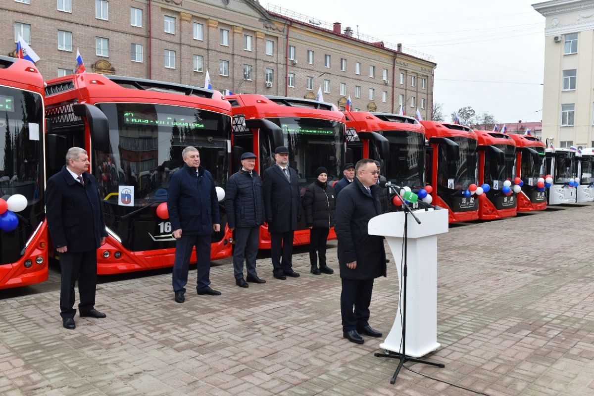 Вместе с главой региона Александром Богомазом вручили транспортным предприятиям 23 троллейбуса и 65 автобусов.