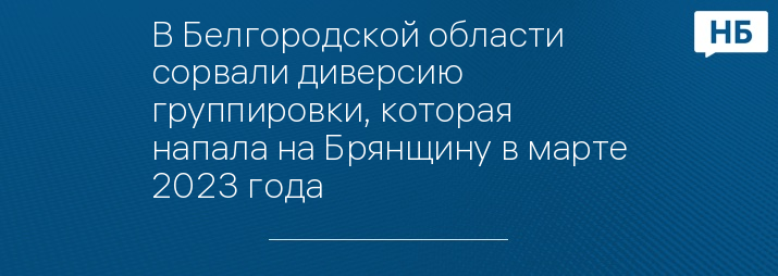 В Белгородской области сорвали диверсию группировки, которая напала на Брянщину в марте 2023 года