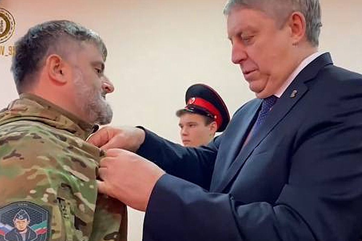 Губернатор Брянской области Александр Богомаз наградил бойцов полка «АХМАТ-Россия» МО РФ за отвагу и мужество, проявленные при задержании террористов, участвовавших в нападении на «Крокус Сити Холл».