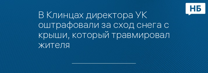 Директор управляющей компании в Клинцах Брянской области оштрафован за ненадлежащее содержание общедомового имущества. Отмечается, что причиной проверки стал инцидент, в котором 28-летний местный житель получил травмы в результате схода снега и наледи с крыши дома на улице Мира.