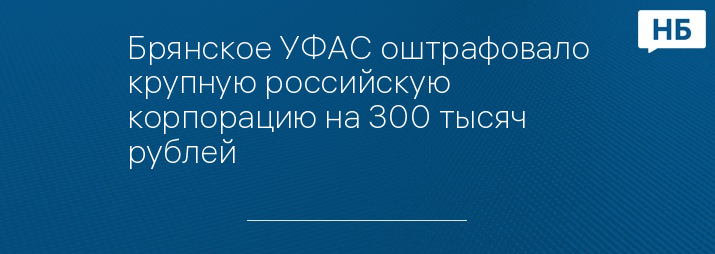 Брянское УФАС оштрафовало крупную российскую корпорацию на 300 тысяч рублей