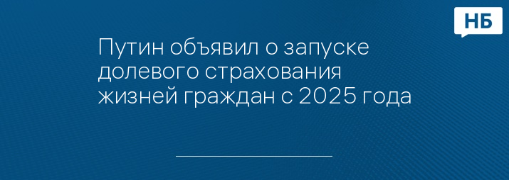 Путин объявил о запуске долевого страхования жизней граждан с 2025 года