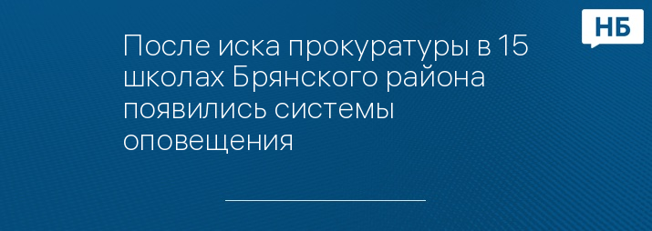 Прокуратура подала иск для установления в 15 школах Брянского района систем оповещения и управления эвакуацией. Уточняется, что во всех случаях нарушения были добровольно исправлены, поэтому прокурор отказался от иска.