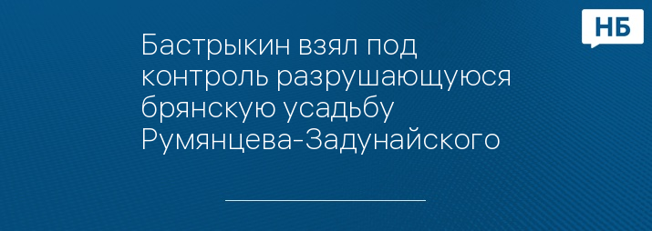 Председатель российского следкома Александр Бастрыкин поручил организовать проверку по факту ненадлежащего содержания исторического здания в Брянской области. Речь идёт об исторической усадьбе Румянцева-Задунайского, которое постепенно разрушается. Кроме того, часть флигеля незаконно использует в качестве склада местный житель.