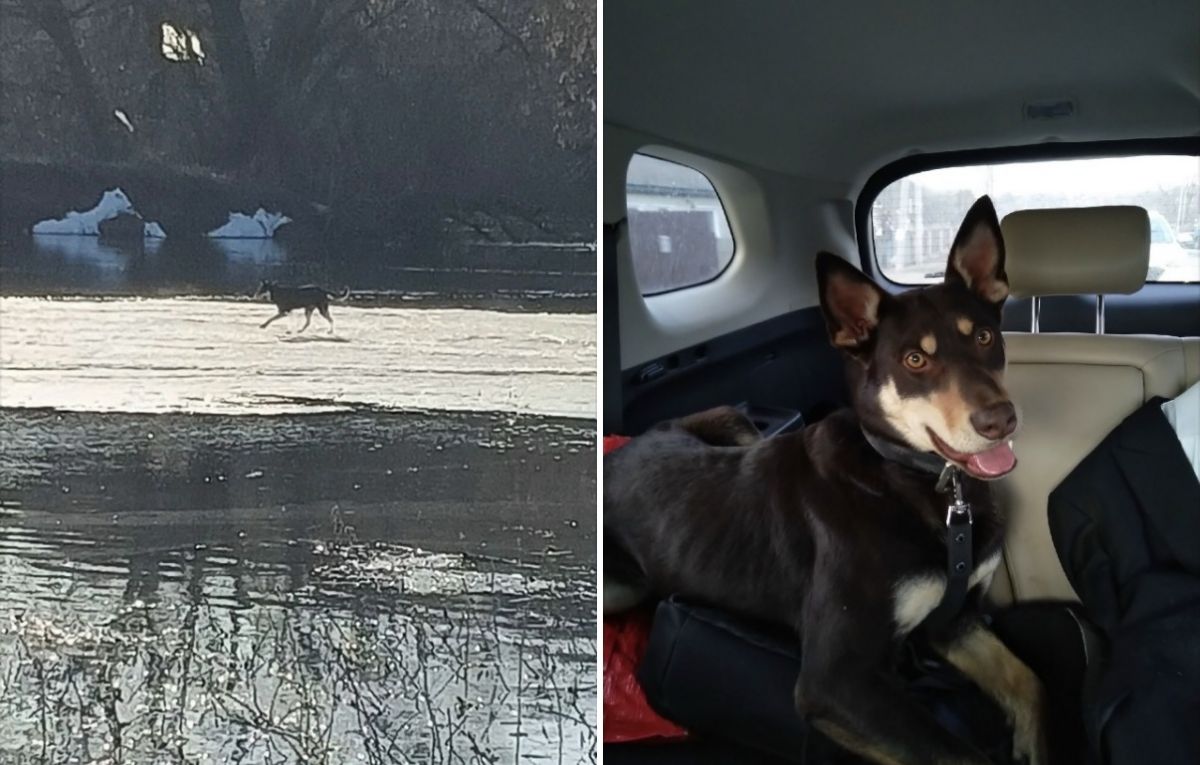 Брянские сотрудники Рыбнадзора спасли собаку породы келпи с речной льдины