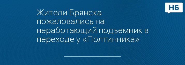 Жители Брянска пожаловались на неработающий подъемник в переходе у «Полтинника»