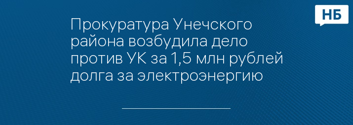 Прокуратура Унечского района возбудила дело против УК за 1,5 млн рублей долга за электроэнергию