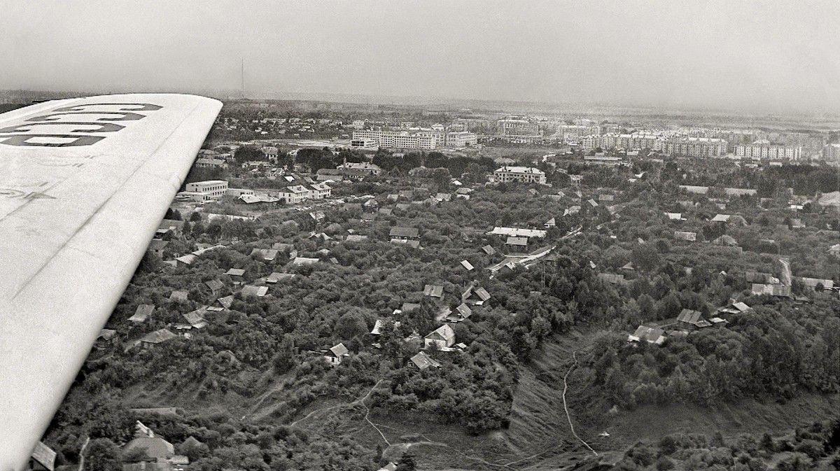 На фоне живописного ландшафта можно заметить крыло самолета с надписью «СССР», что добавляет снимку особый исторический контекст. Это не просто изображение, а настоящая машина времени, которая переносит нас в эпоху, когда Брянск жил своей насыщенной жизнью, а его улицы были полны людей и событий. Группа «Брянск глазами разных поколений», разместившая этот кадр, стремится сохранить память о прошлом и показать, как менялся город на протяжении десятилетий.