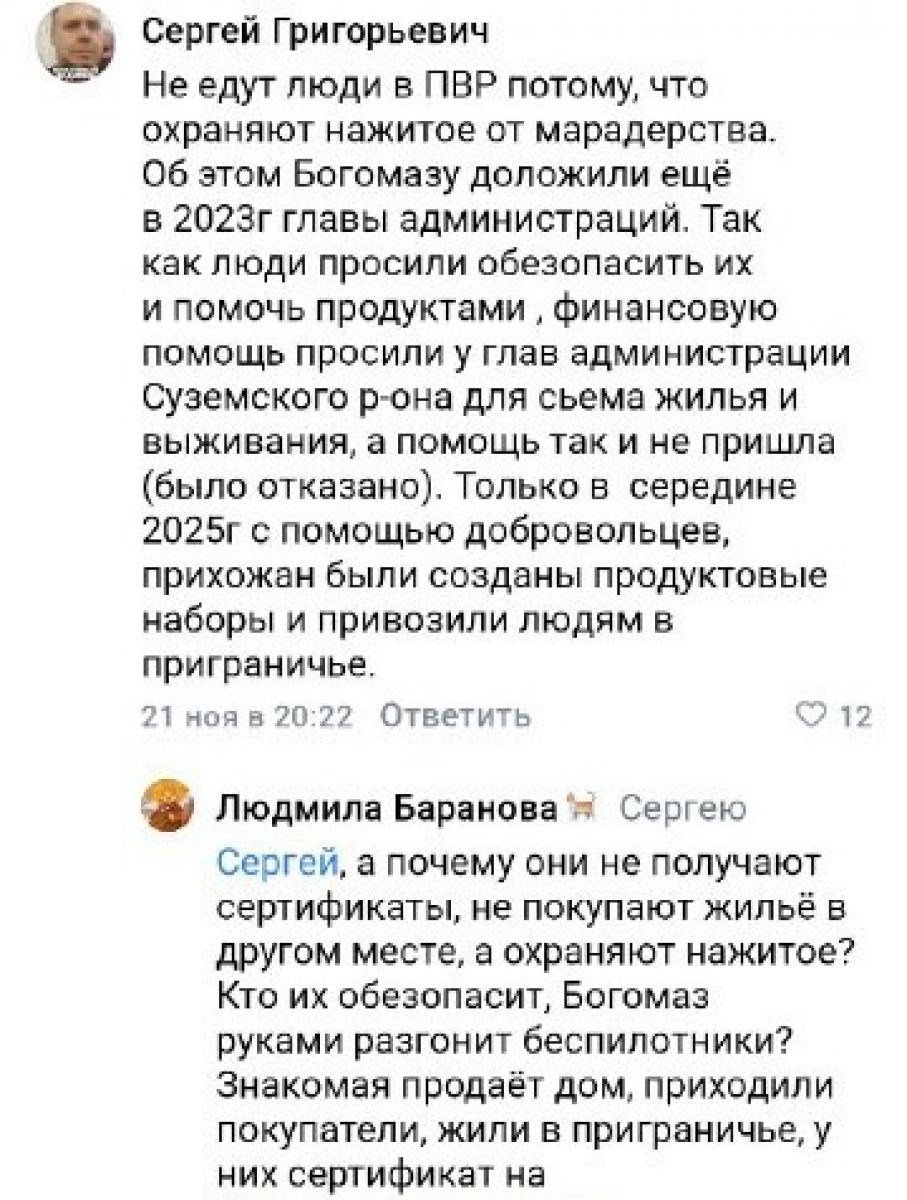 Богомаз: потерявшие жилье жители брянского приграничья не едут в ПВР