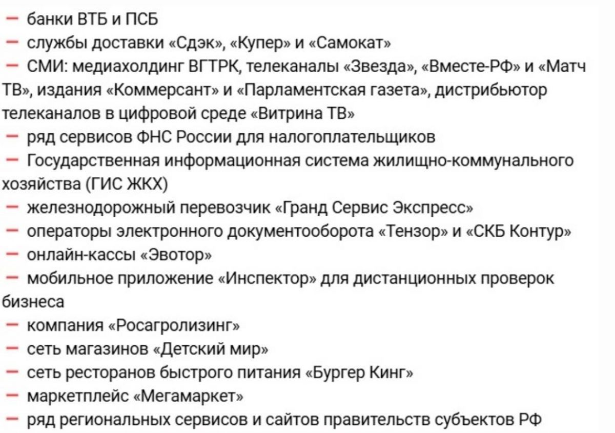 Минцифры России включило в список сервисов, работающих при отключении мобильного интернета банки, службы курьерской доставки, федеральные издания, некоторые госресурсы и региональные сайты: