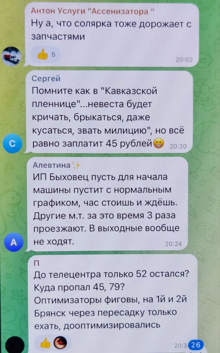 В мэрии пояснили, что цена на проезд является компетенцией перевозчика, а не города, однако это обстоятельство брянцев никак не успокоило - буквально за час после публикации релиза мэрии о подорожании, местные паблики разорвали разъяренные комментарии горожан.