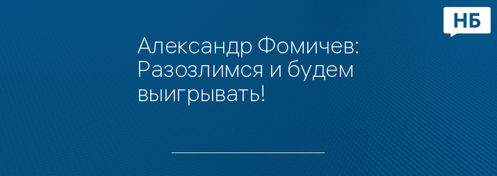 Александр Фомичев: Разозлимся и будем выигрывать!