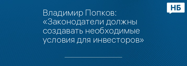 Владимир Попков: «Законодатели должны создавать необходимые условия для инвесторов»