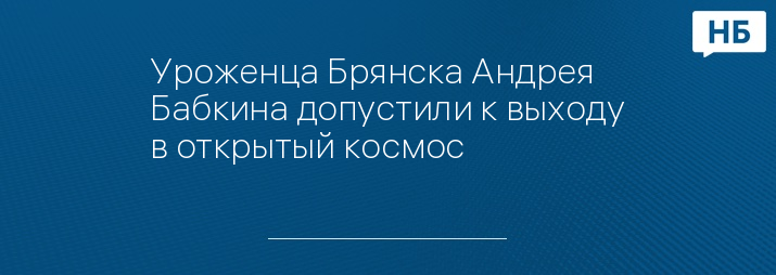 Уроженца Брянска Андрея Бабкина допустили к выходу в открытый космос