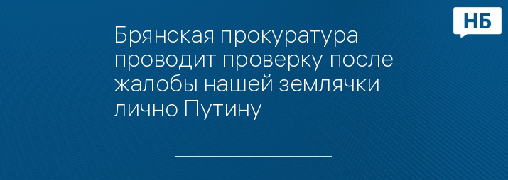 Брянская прокуратура проводит проверку после жалобы нашей землячки лично Путину